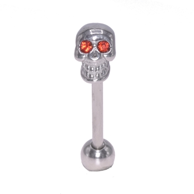 Piercing de langue en acier chirurgical, tête de mort aux yeux rouges