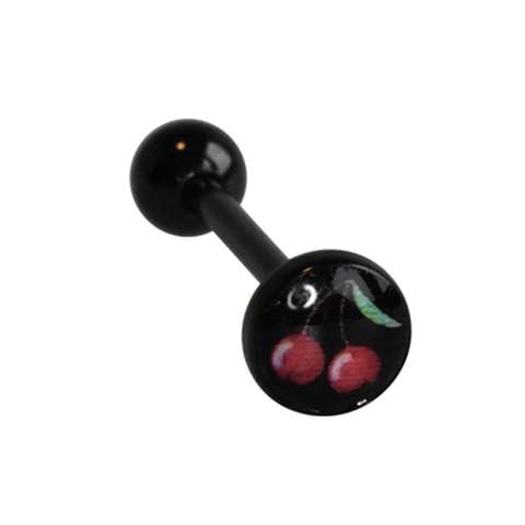Piercing de langue en acier noir chirurgical, cerise avec fond noir