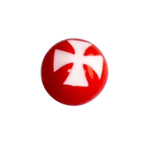 Piercing de langue en acrylique, boule rouge avec croix de malte