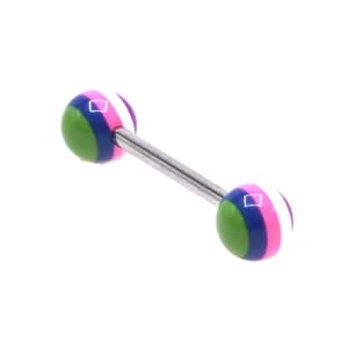 Piercing de langue en acrylique, vert-bleu-rose-blanc-mauve