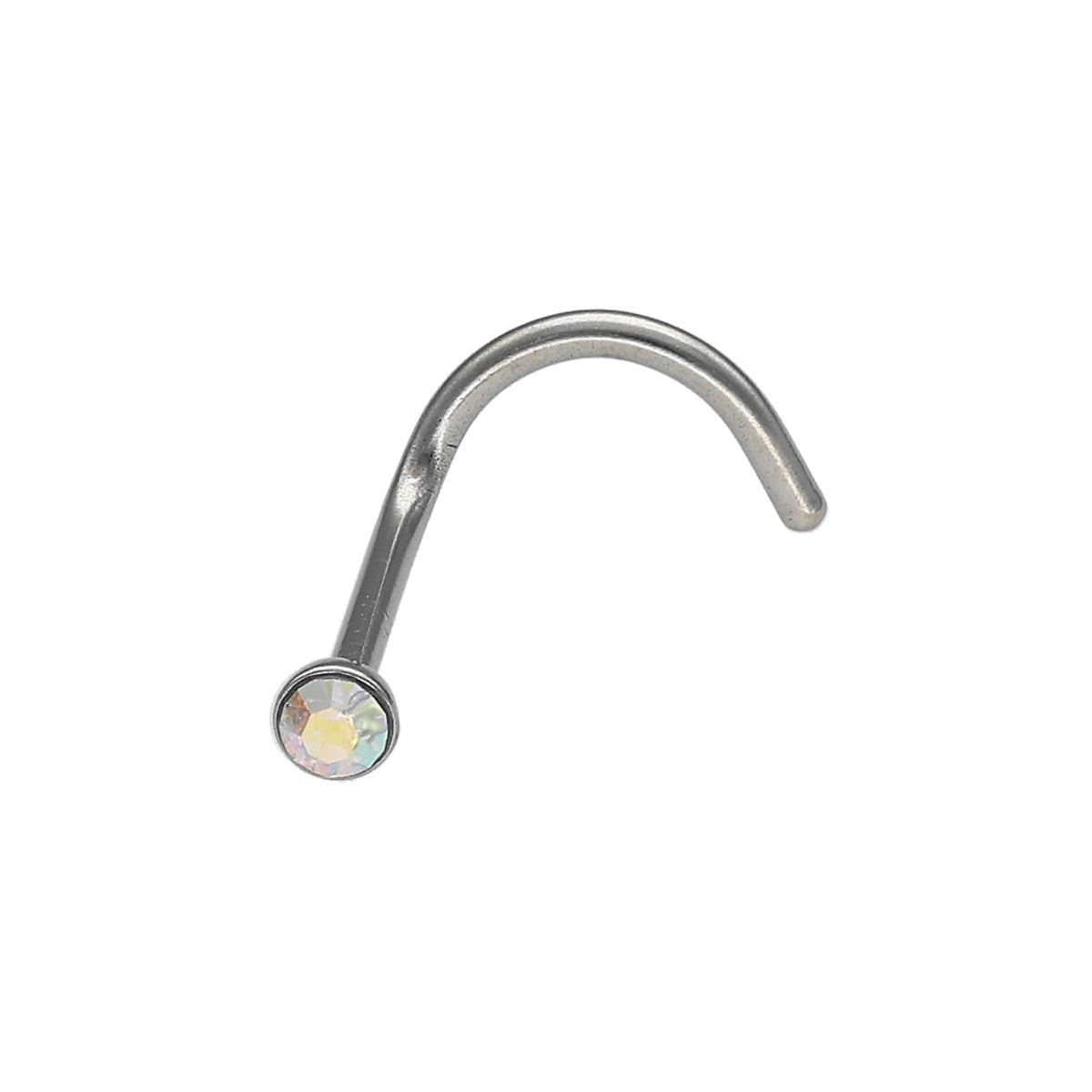 Piercing de nez en acier chirurgical, courbé avec cristal blanc irisé
