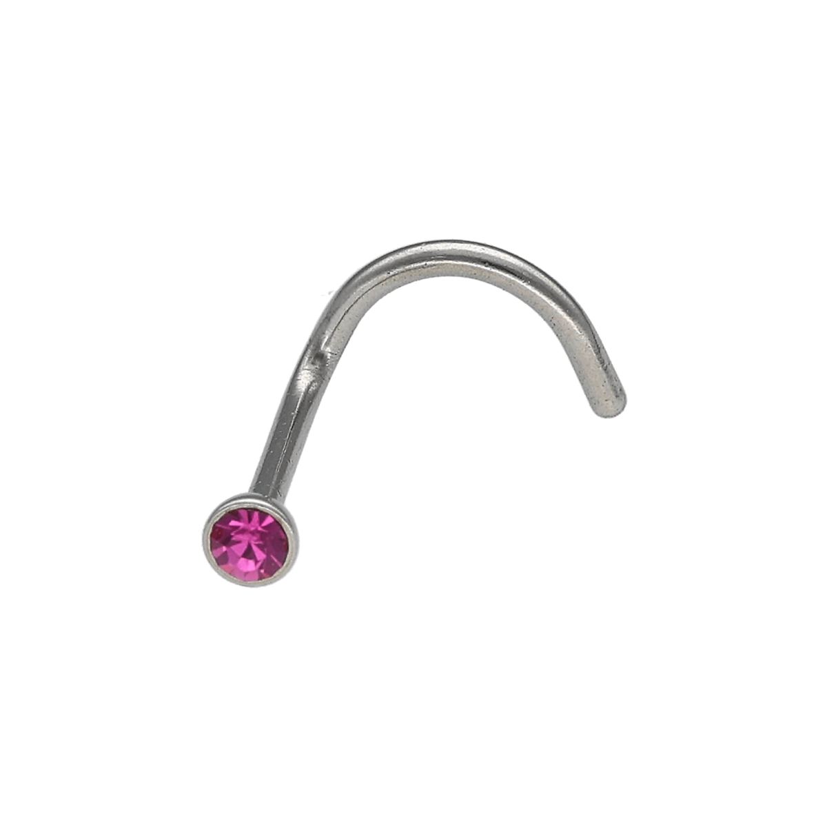 Piercing de nez en acier chirurgical, courbé avec cristal fuchsia