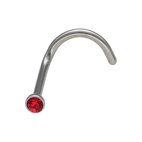 Piercing de nez en acier chirurgical, courbé avec cristal rouge