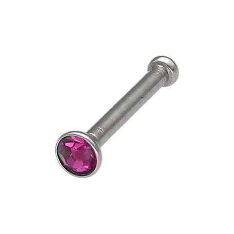 Piercing de nez en acier chirurgical droit avec cristal fuchsia