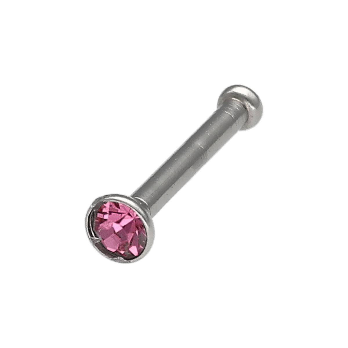 Piercing de nez en acier chirurgical droit avec cristal rose