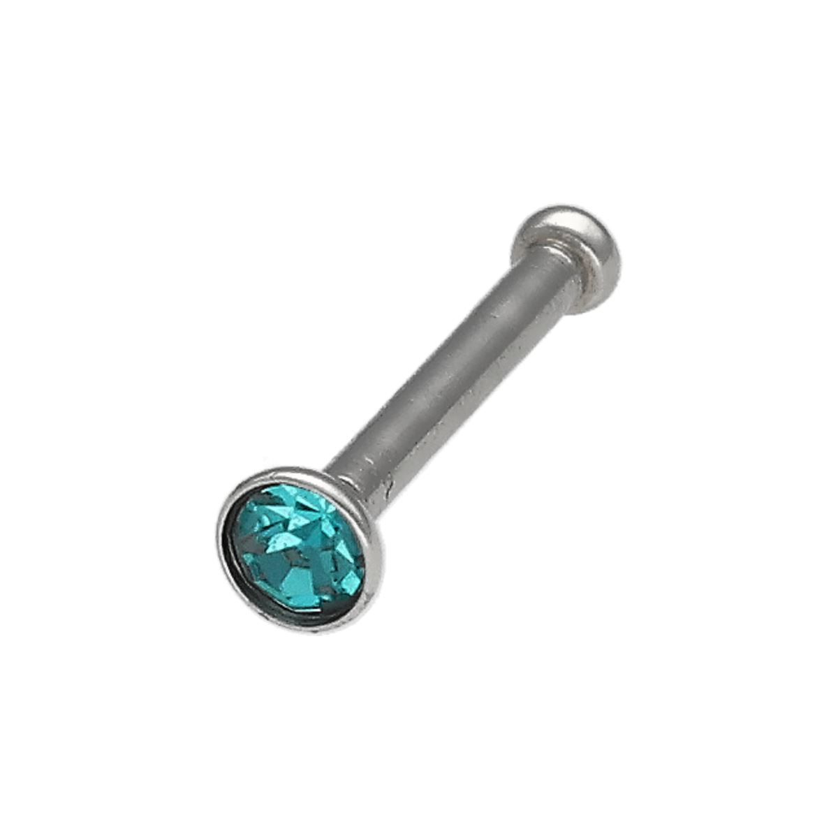 Piercing de nez en acier chirurgical droit avec cristal turquoise