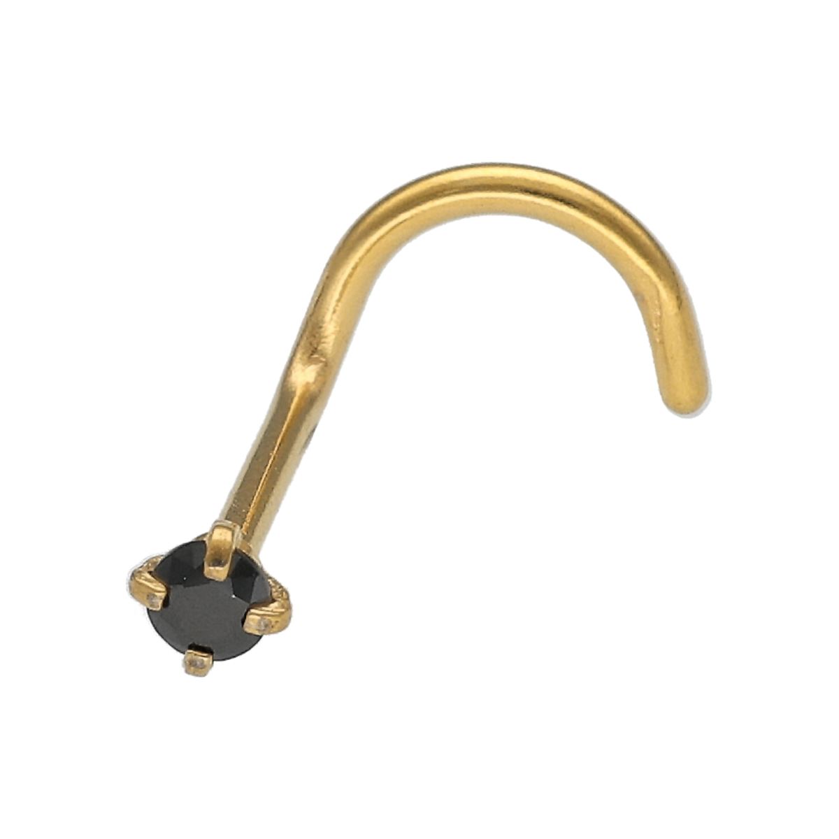 Piercing de nez en acier doré chirurgical, courbé avec un cristal noir griffé