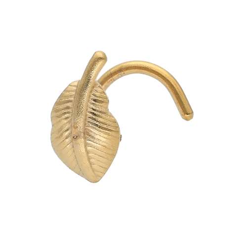 Piercing de nez en acier doré chirurgical, courbé avec une feuille