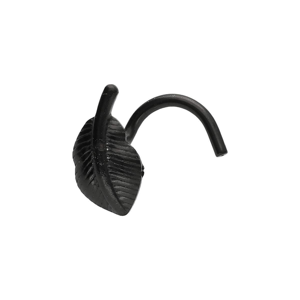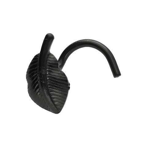 Piercing de nez en acier noir chirurgical, courbé avec un feuille