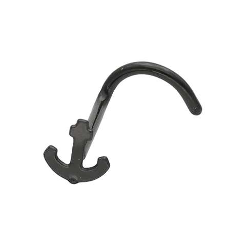 Piercing de nez en acier noir chirurgical, courbé avec une ancre