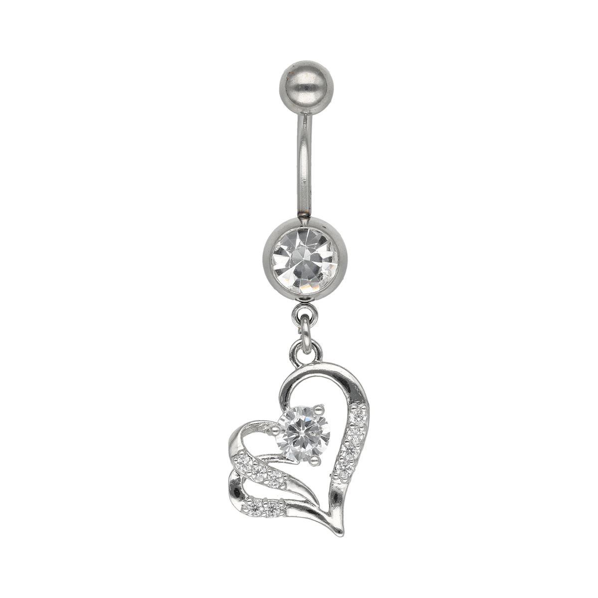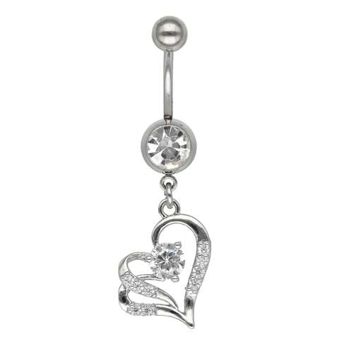 Piercing de nombril en acier chirurgical-coeur avec des petits cristaux blancs