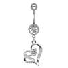 Super joli piercing de nombril et trés élégant. Ce piercing de nombril est fabriqué en acier chirurgical 316L de haute qualité et pourvu de cristaux blancs brillants. La boule supérieure peut être dévissée tandis que le motif inférieur est attaché à la tige. Le pendentif est en laiton plaqué argent.