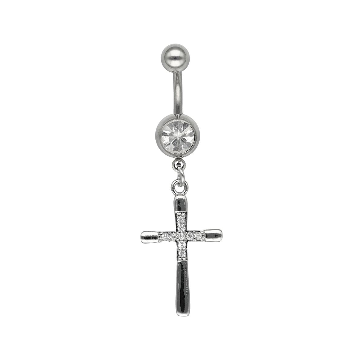 Piercing de nombril en acier chirurgical-croix avec des cristaux blancs