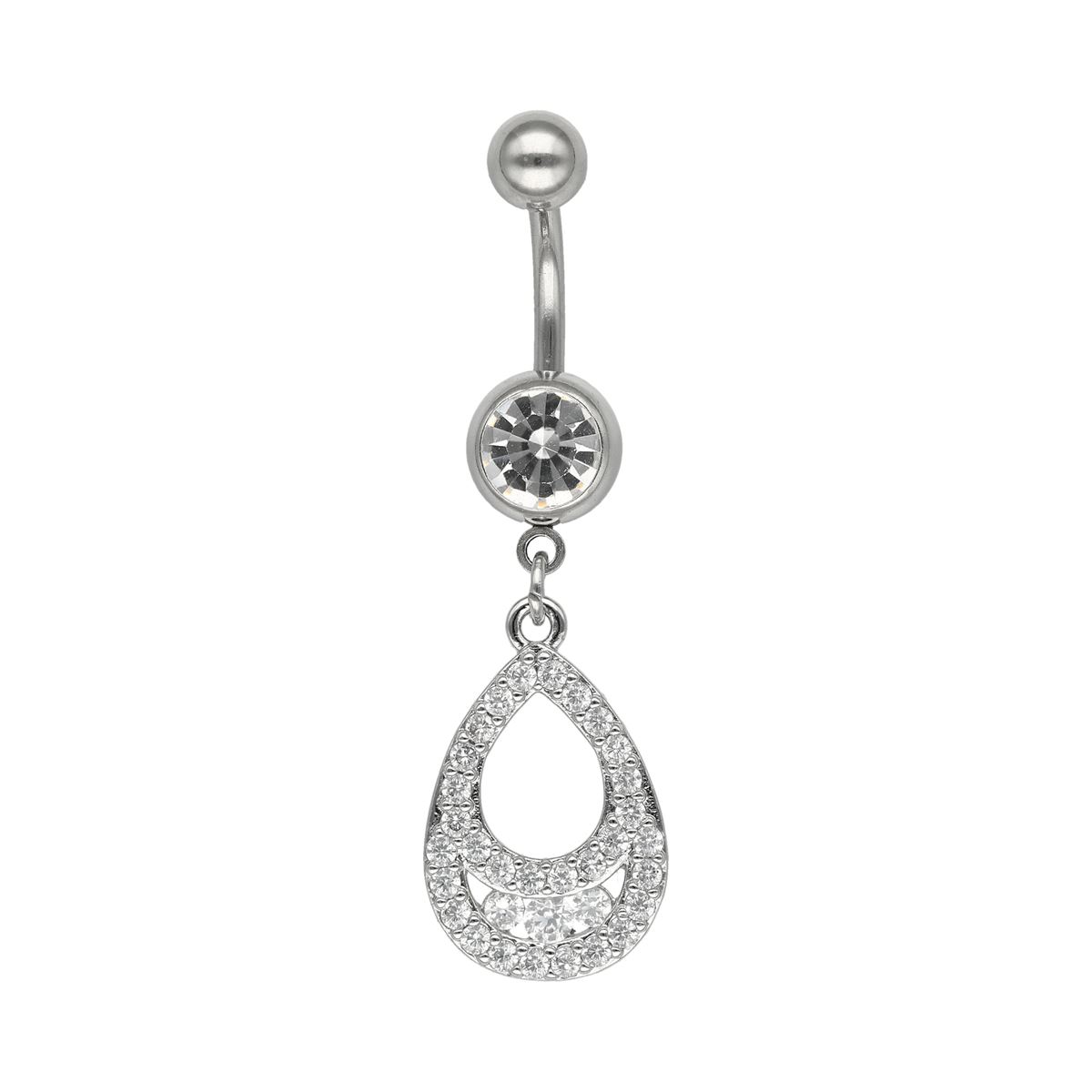Piercing de nombril en acier chirurgical, goutte avec des cristaux blancs