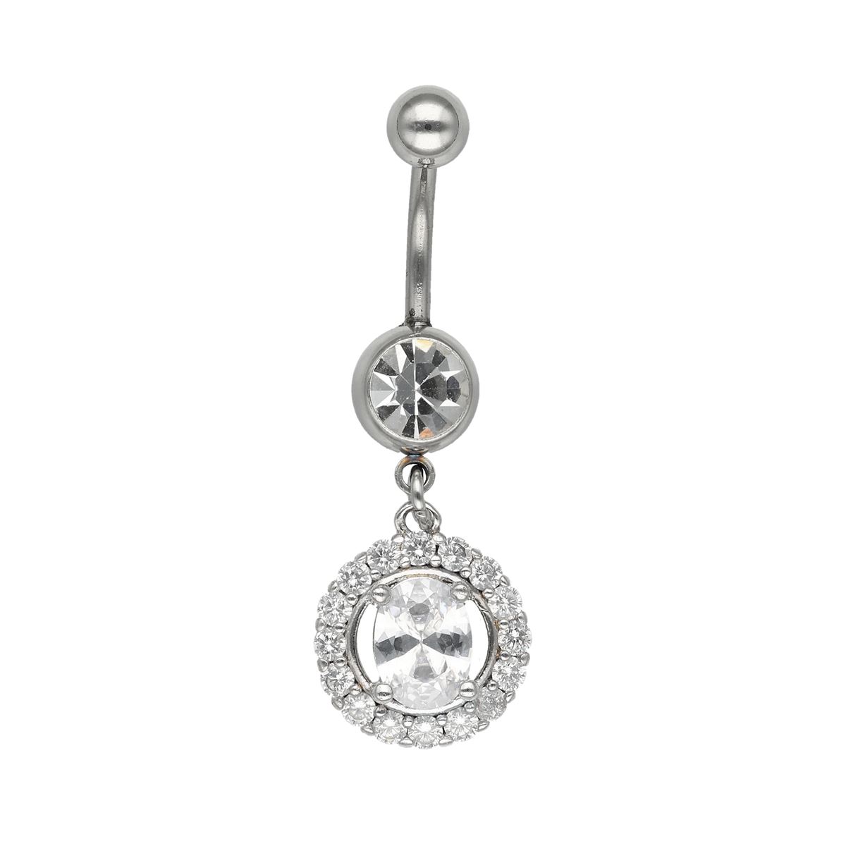 Piercing de nombril en acier chirurgical, motif rond avec des cristaux blancs