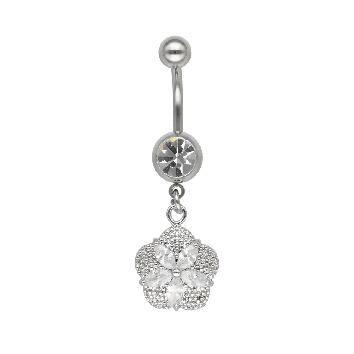 Piercing de nombril en acier chirurgical, pendentif avec cristaux blancs