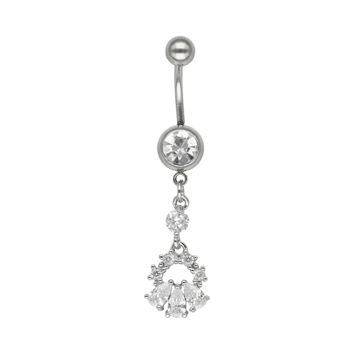 Piercing de nombril en acier chirurgical-pendentif avec plusieurs cristaux blancs
