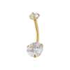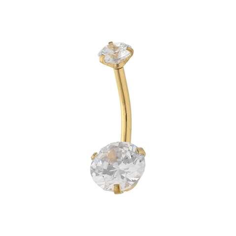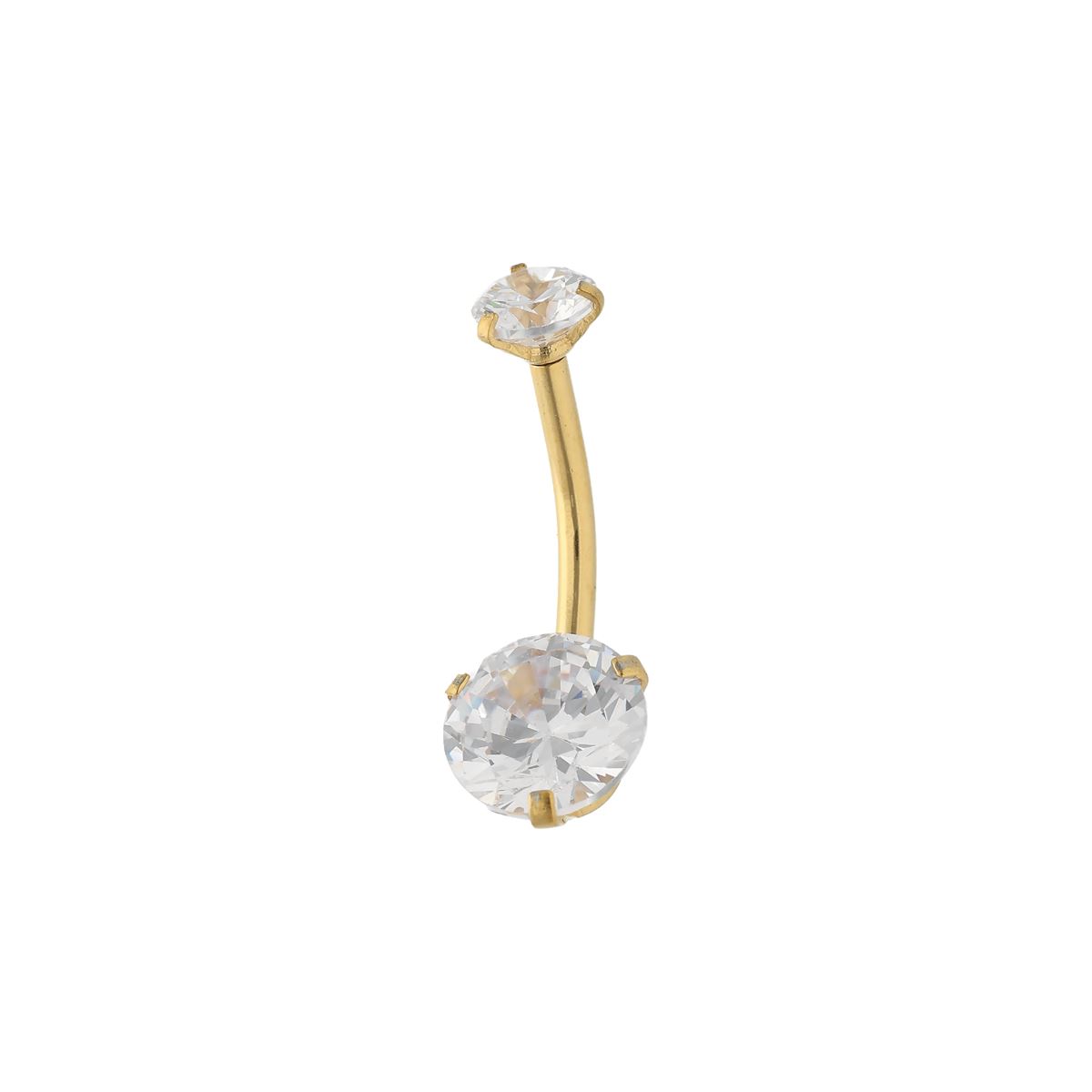 Piercing de nombril en acier doré chirurgical avec 2 cristaux blancs griffés