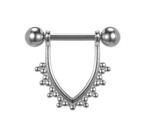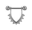 Piercing de téton super cool et à la mode composé de très haute qualité. Le bijou est composé de laiton et d'acier chirurgical. La tige qui traverse le téton est en acier chirurgical et l'arche qui pend sous le téton est en laiton qui obtient sa belle couleur grâce à un traitement de surface supplémentaire. La longueur de la barre est de 14 mm et l'épaisseur est de 1,6 mm.