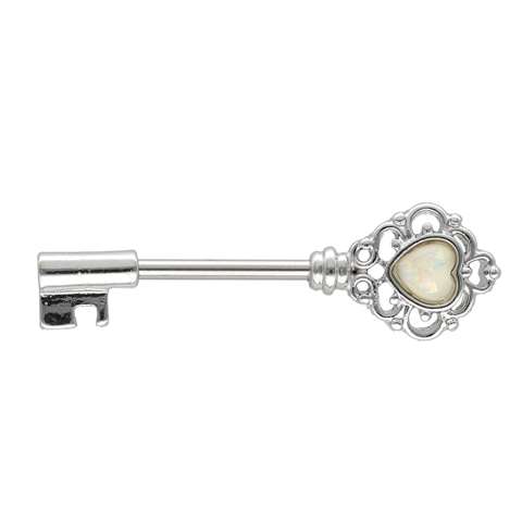 Piercing de téton en acier chirurgical avec une clé et une petite pierre opale blanc