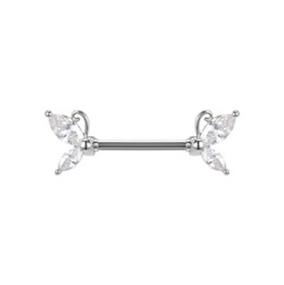 Piercing de téton en acier chirurgical-boucle avec 2 cristaux blancs