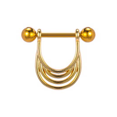Piercing de téton en acier doré chirurgical avec 4 boucles