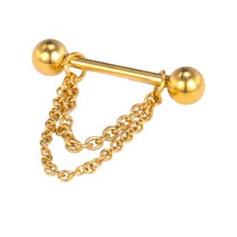 Piercing de téton en acier doré chirurgical avec une chaîne