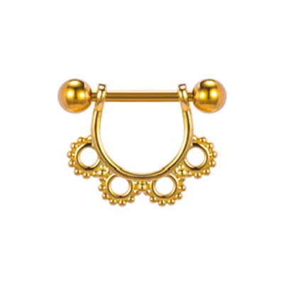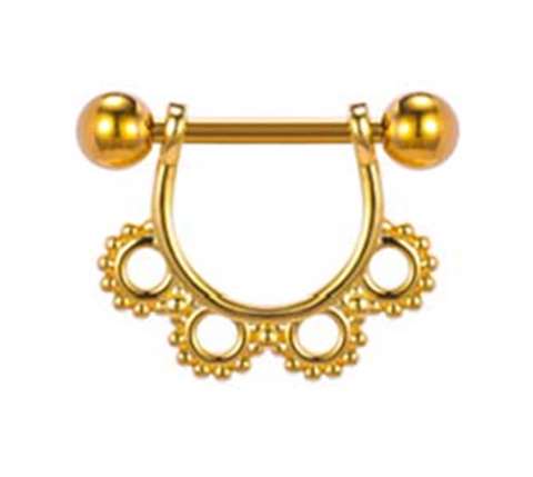 Piercing de téton en acier doré chirurgical-motif avec 4 boucles