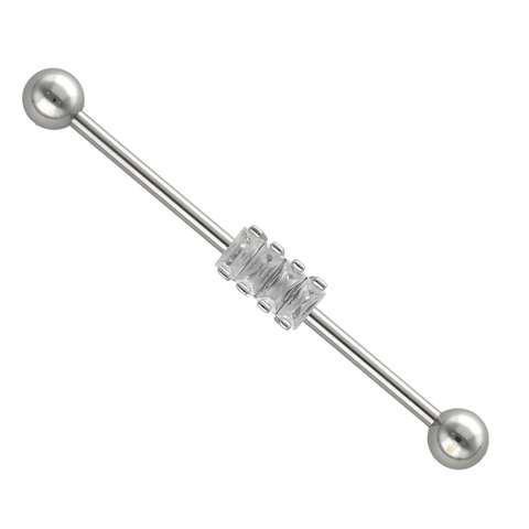 Piercing industriel en acier chirurgical avec 4 cristaux blancs