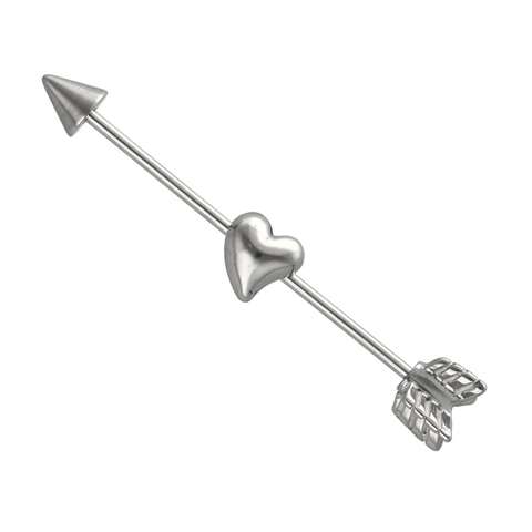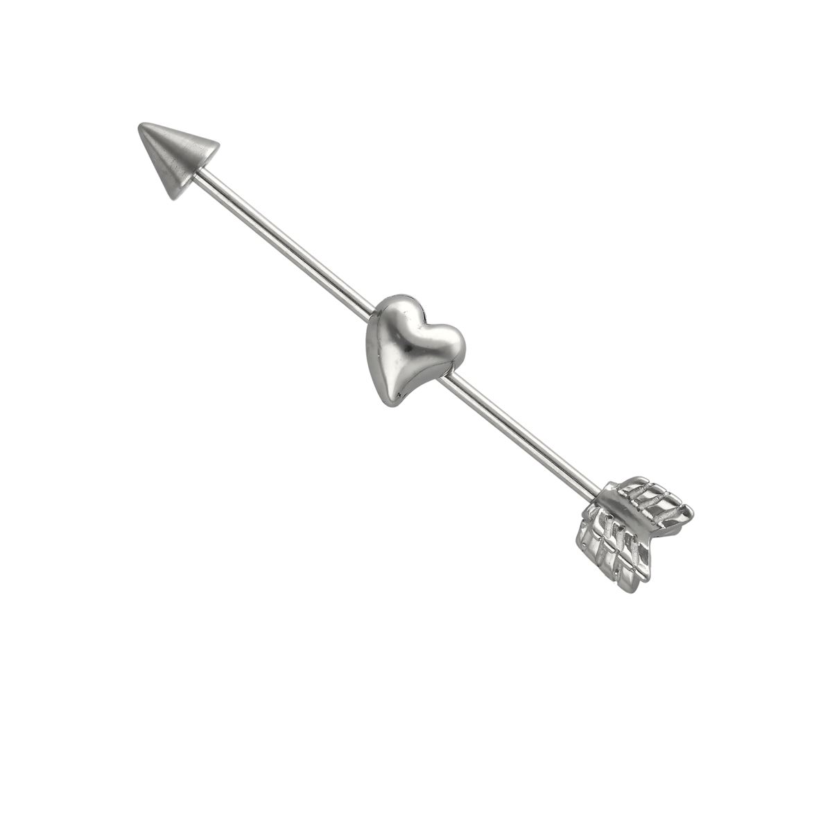 Piercing industriel en acier chirurgical, flèche avec un petit coeur