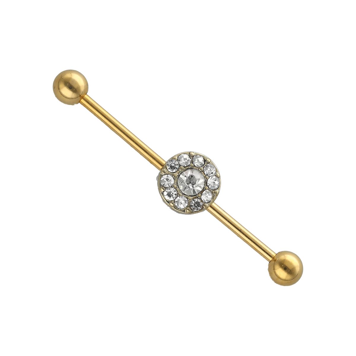 Piercing industriel en acier chirurgical, motif avec différents cristaux blancs