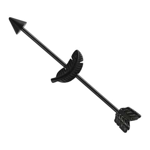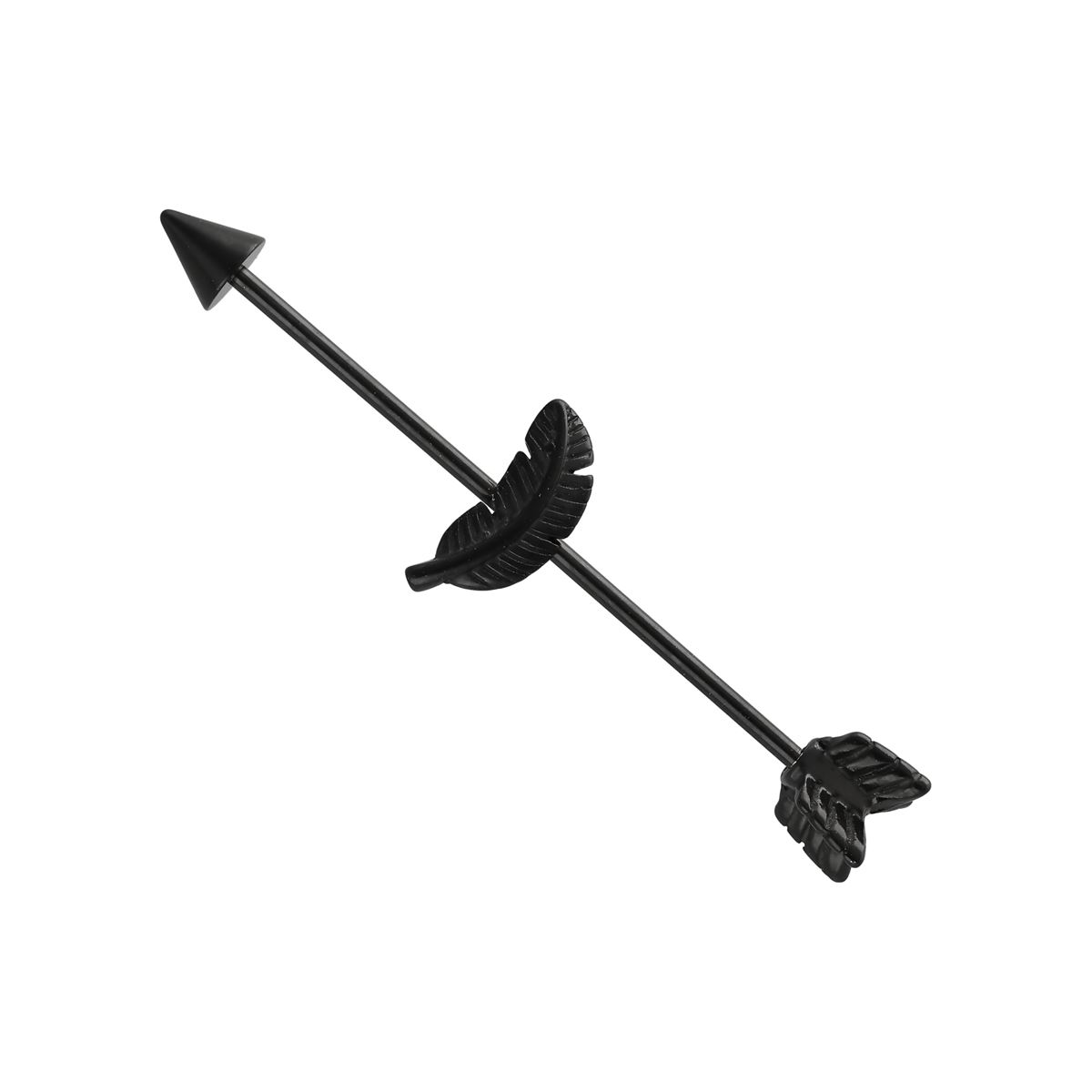 Piercing industriel en acier noir chirurgical, flèche avec une plume