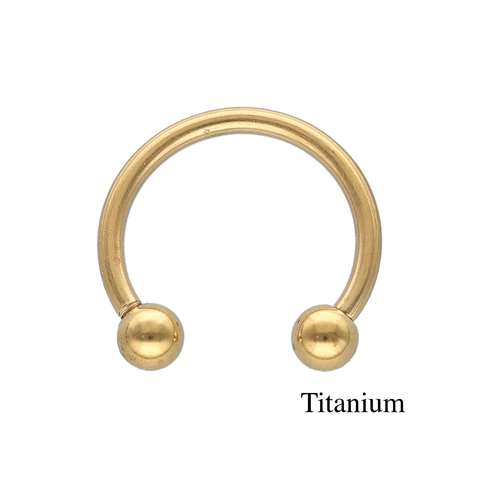 Ce fer à cheval est fabriquée en titane de haute qualité G23 et possède un revêtement PVD doré résistant aux rayures. Le revêtement PVD or est particulièrement remarquable, ce qui donne à la pièce un éclat brillant et argenté. Les propriétés matérielles du titane incluent non seulement une haute qualité, mais également une bonne compatibilité cutanée et une bonne durabilité. Le fer à cheval a une épaisseur de barre de 1,2 mm et est disponible en 4 diamètres différentes, 6 mm - 8 mm - 10 mm et 12 mm. Le diamètre de la boule est de 3 mm.