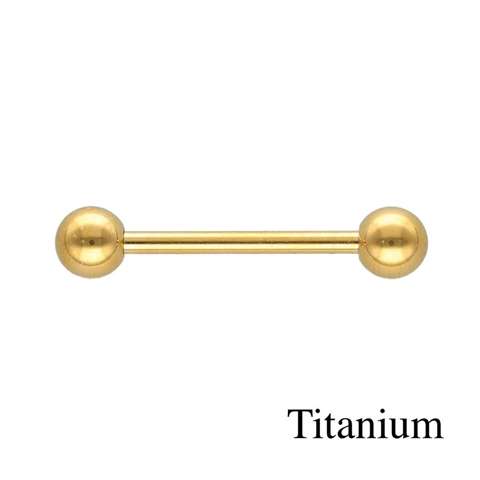 Ce piercing classique est fabriquée en titane de haute qualité G23 et possède un revêtement PVD doré résistant aux rayures. Le revêtement PVD or est particulièrement remarquable, ce qui donne à la pièce un éclat brillant et argenté. Les propriétés matérielles du titane incluent non seulement une haute qualité, mais également une bonne compatibilité cutanée et une bonne durabilité. Le piercing a une épaisseur de barre de 1,6 mm et est disponible en 5 longueurs différentes, 14 mm - 16 mm - 18 mm - 20 mm et 22 mm. Le diamètre de la boule est de 5 mm.
