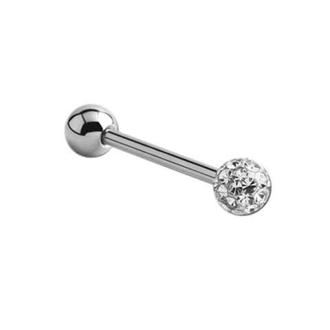 Piercing de langue en acier chirurgical, boule blanc cristaux couvert de résine époxy