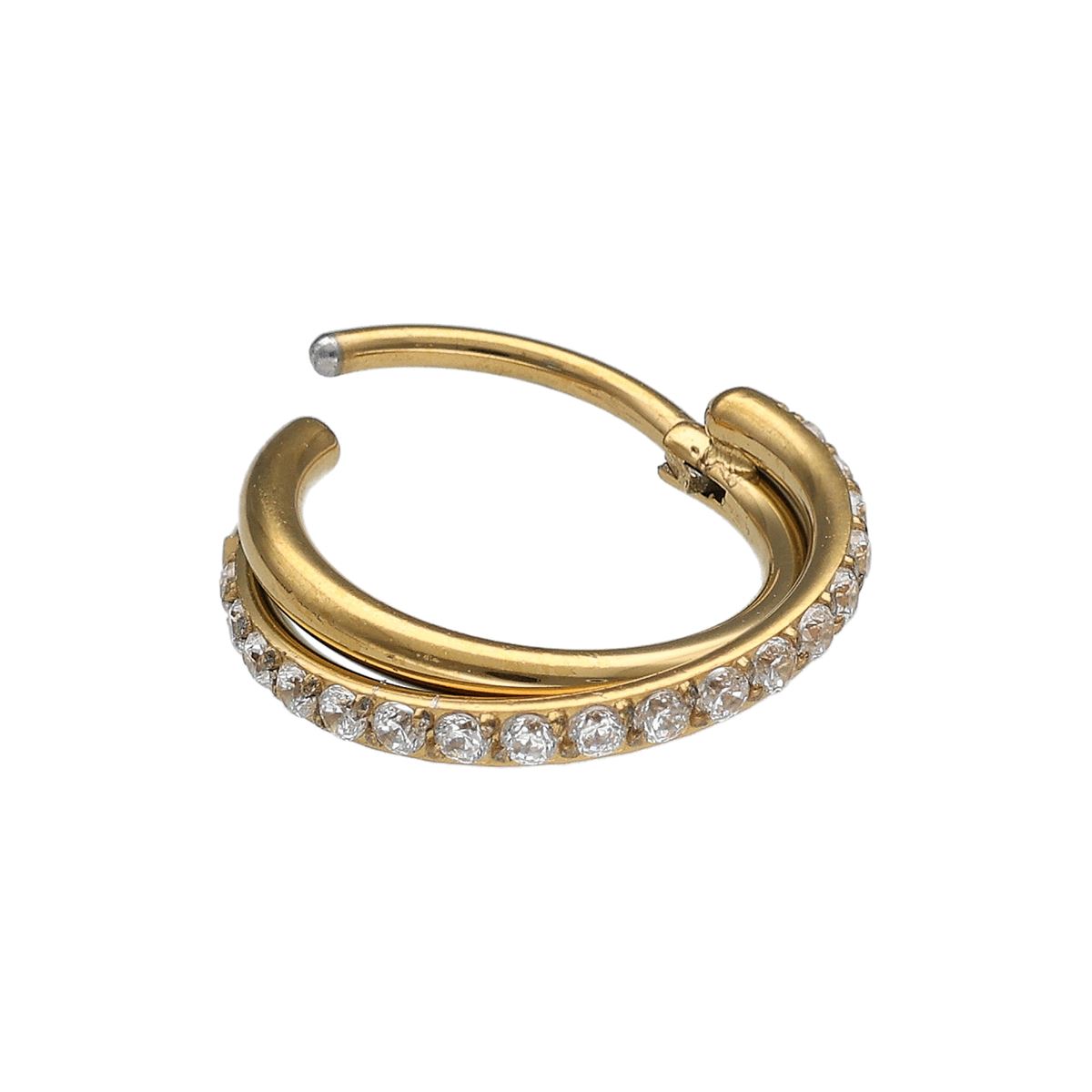 Anneau/clicker en acier doré chirurgical double rangée croisée avec cristaux 0,8 mm
