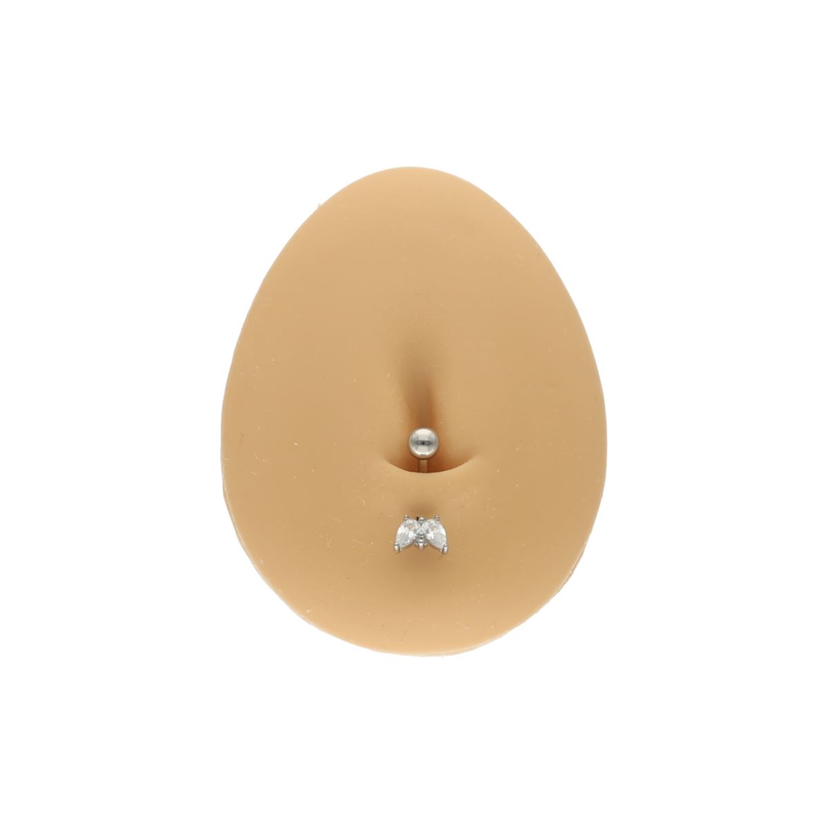 Piercing de nombril en acier chirurgical motif avec 2 cristaux blancs