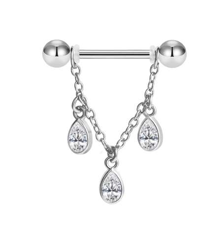 Piercing de téton en acier chirurgical chaîne avec 3 cristaux blancs