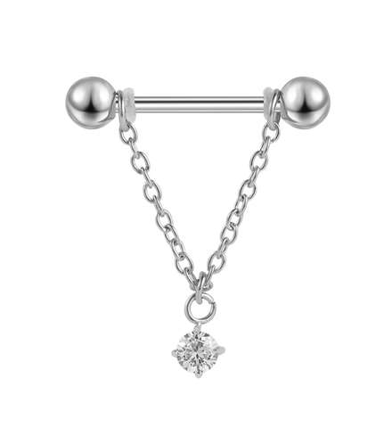 Piercing de téton en acier chirurgical chaîne avec un cristal
