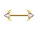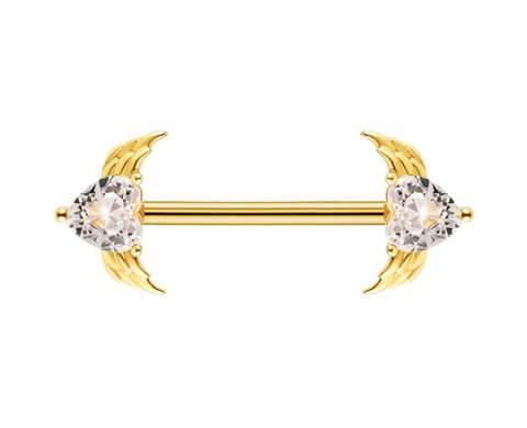 Piercing de téton en acier doré chirurgical ailes avec un cristal