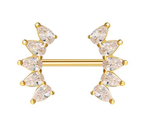 Piercing de téton en acier doré chirurgical cristaux avec filetage interne