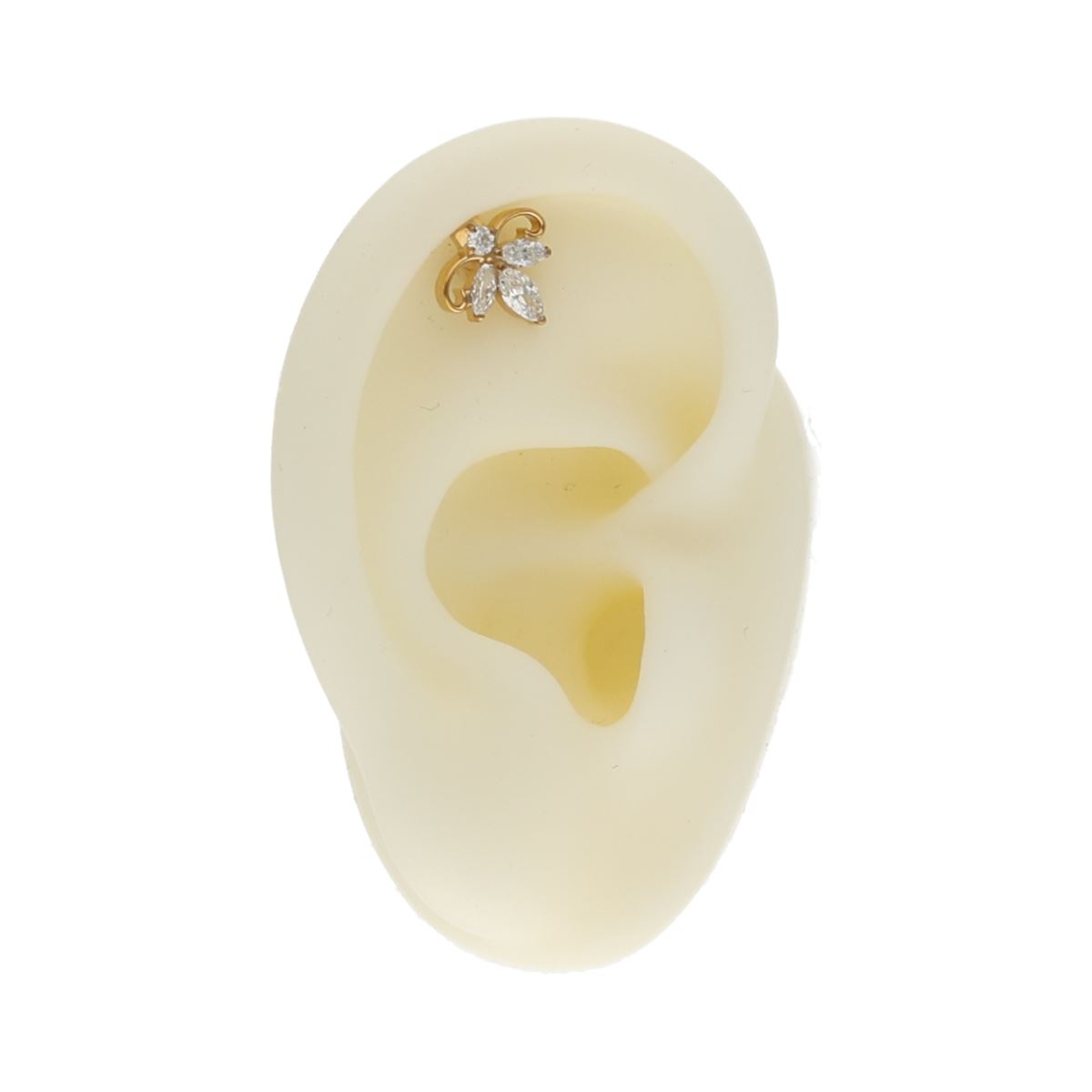 Labret/helux/tragus piercing en titane doré F136 lotus avec des cristaux blancs