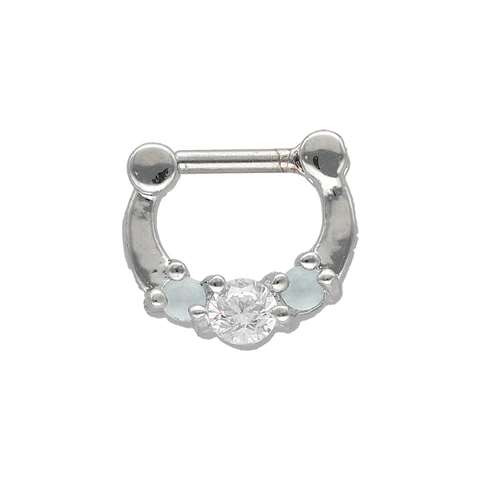 Septum en acier chirurgical avec 1 cristal blanc et 2 cristaux bleu clair