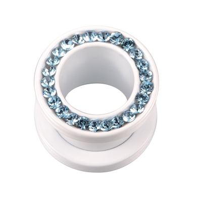Tunnel en acier chirurgical, blanc avec cristaux bleu clair swarovski
