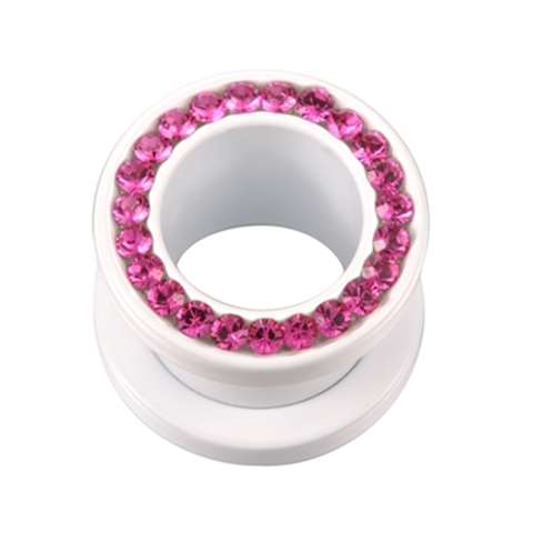 Tunnel en acier chirurgical, blanc avec cristaux fuchsia swarovski