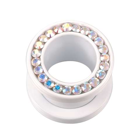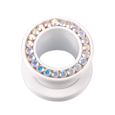 Tunnel en acier chirurgical, blanc avec cristaux irisé swarovski