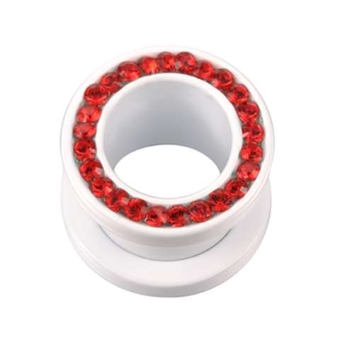 Tunnel en acier chirurgical, blanc avec cristaux rouge swarovski