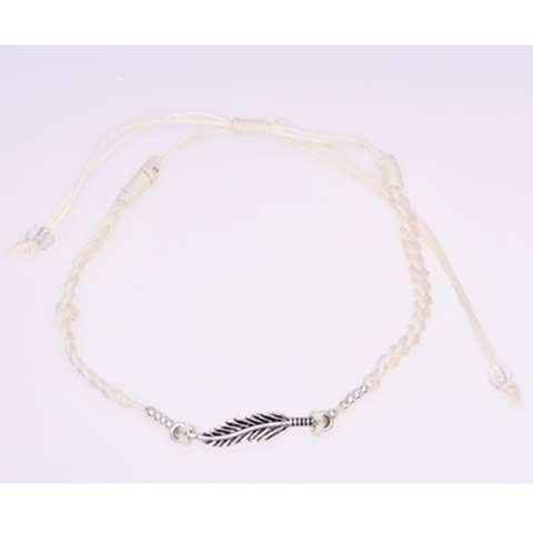 Beige gevlochten armband met een blad