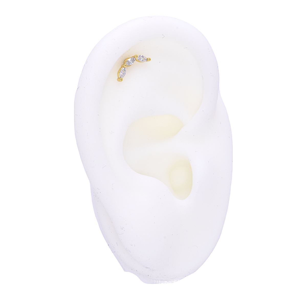 Labret/helix/tragus piercing in goud chirurgisch staal gebogen motief met 3 witte kristallen