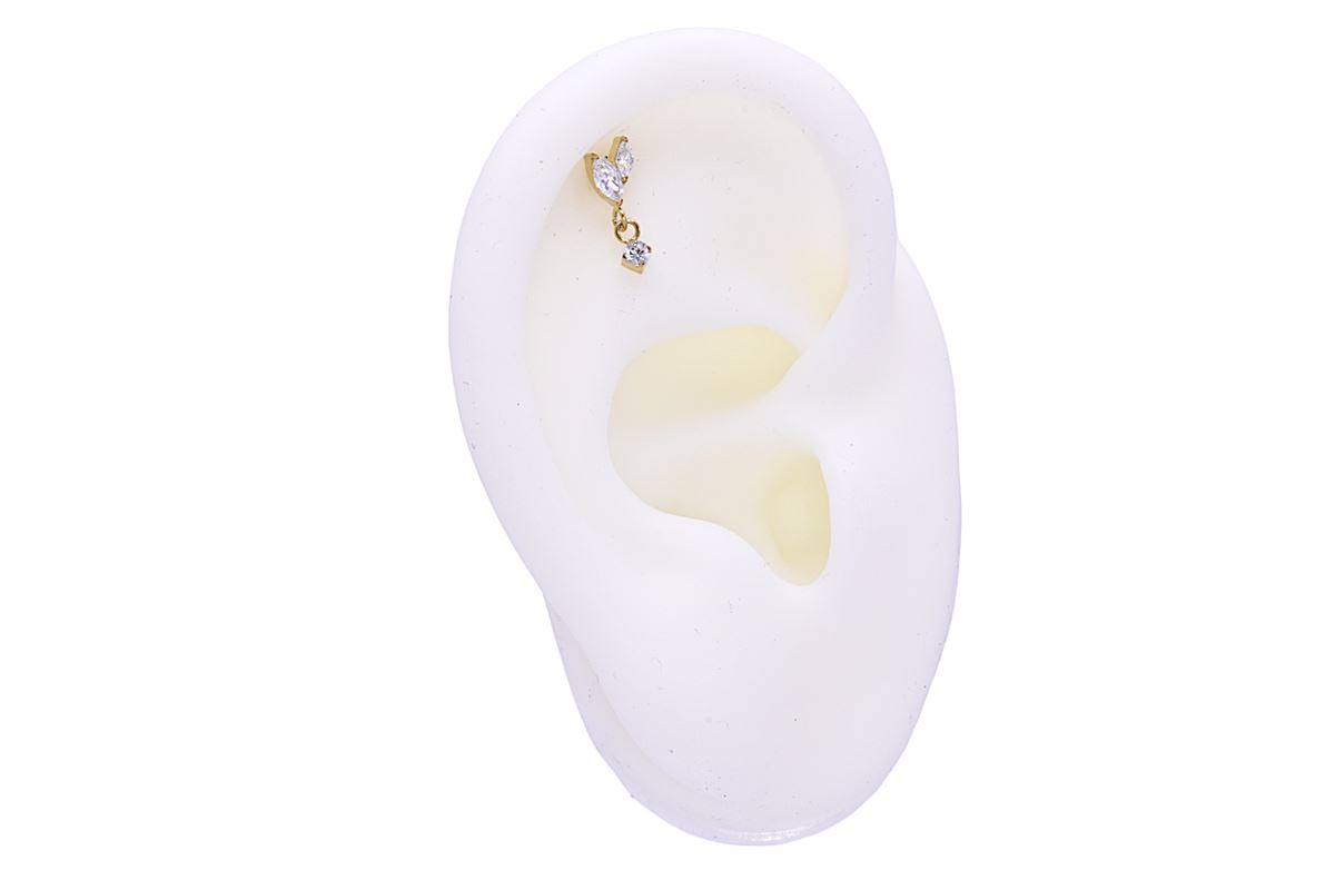 Labret/helix/tragus piercing in goud titanium met een hanger